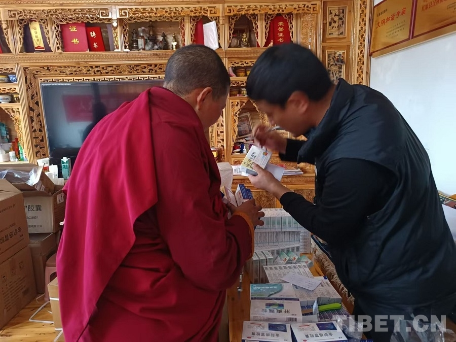 圖為工作人員照方為覺姆發(fā)放藥品并講解服用注意事項 攝影:賈春玲