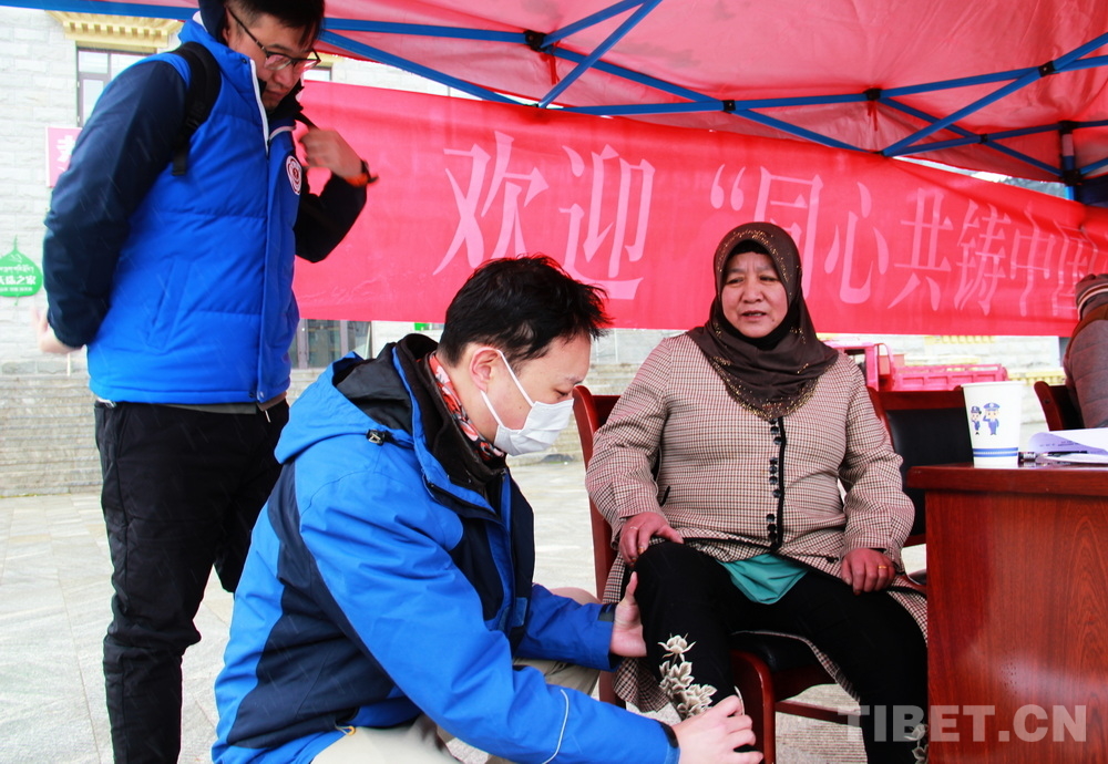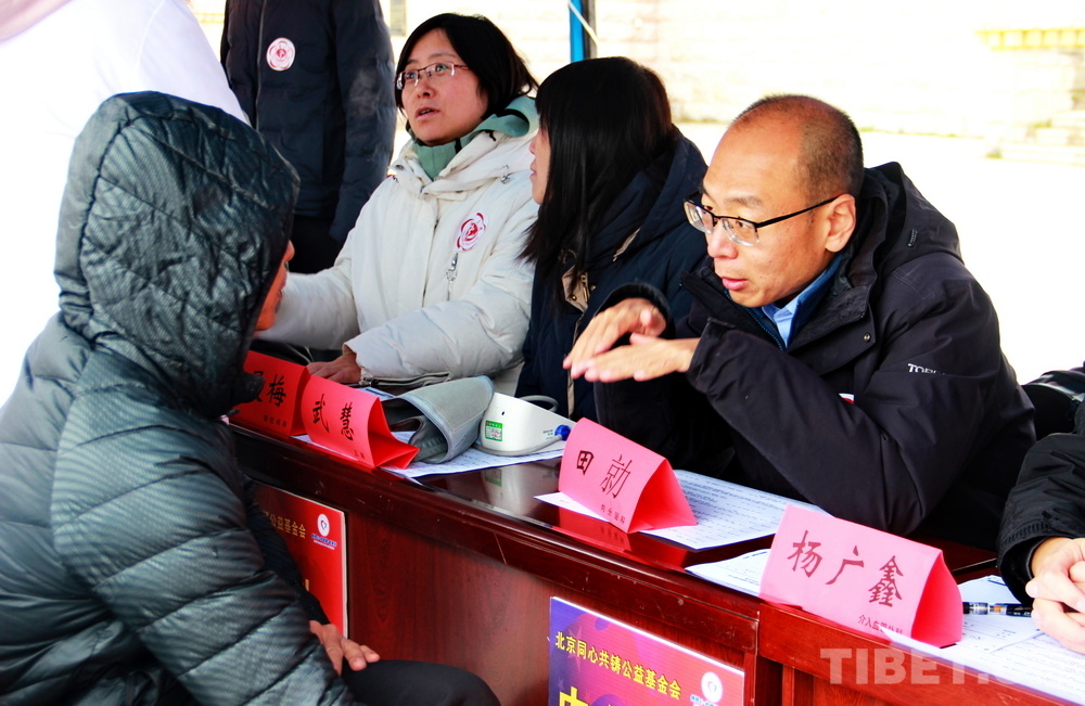 高原的大雪天,在室外即便來(lái)回走動(dòng)也感覺(jué)格外寒冷。前來(lái)問(wèn)診的患者絡(luò)繹不絕,醫(yī)務(wù)志愿者們堅(jiān)守崗位,身披雪花,腳踩積雪,在翻譯的幫助下不停接診,一坐就是大半天。有的醫(yī)務(wù)志愿者專(zhuān)心接診,渾然不知衣服上已經(jīng)積雪;有的醫(yī)務(wù)志愿者發(fā)現(xiàn)患者不太理解疾病的分科,就同時(shí)擔(dān)起了分診工作;有的醫(yī)務(wù)志愿者自身高反強(qiáng)烈,吸著氧也要堅(jiān)持接診……