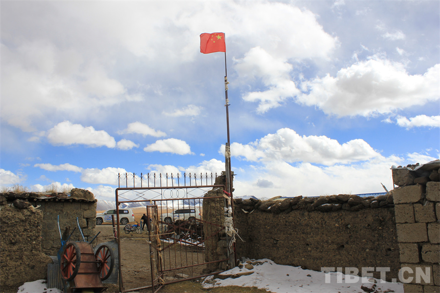 圖為多吉才覺家門口飄揚(yáng)的國旗 攝影:蔣馨悅