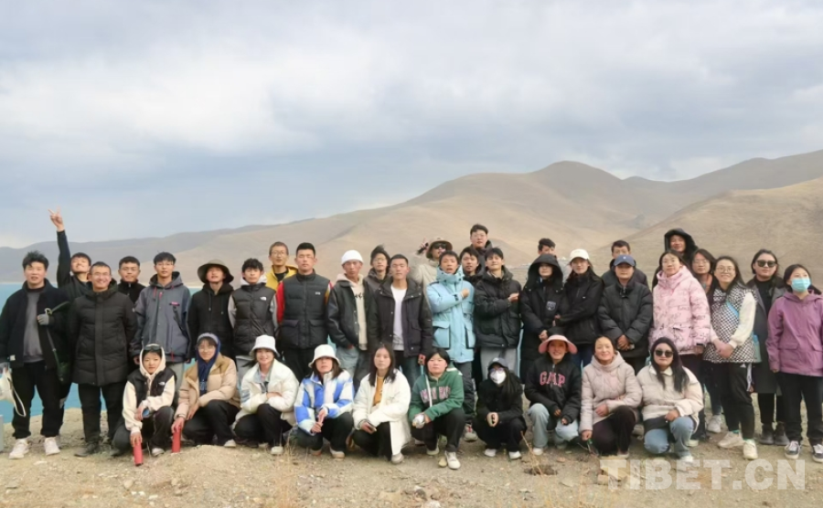 圖為張艾平帶領(lǐng)學(xué)生在羊卓雍錯(cuò)研學(xué)