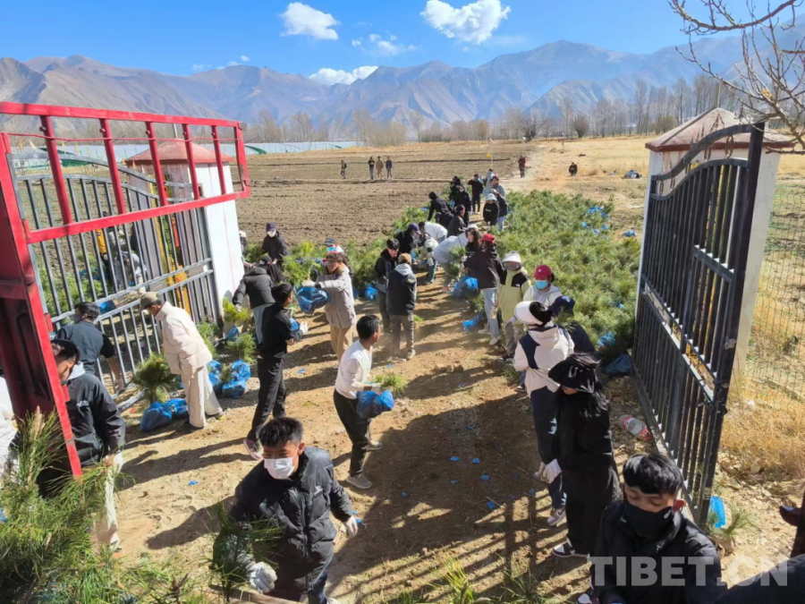 圖為張艾平帶領(lǐng)學(xué)生一起參與拉薩南北山綠化