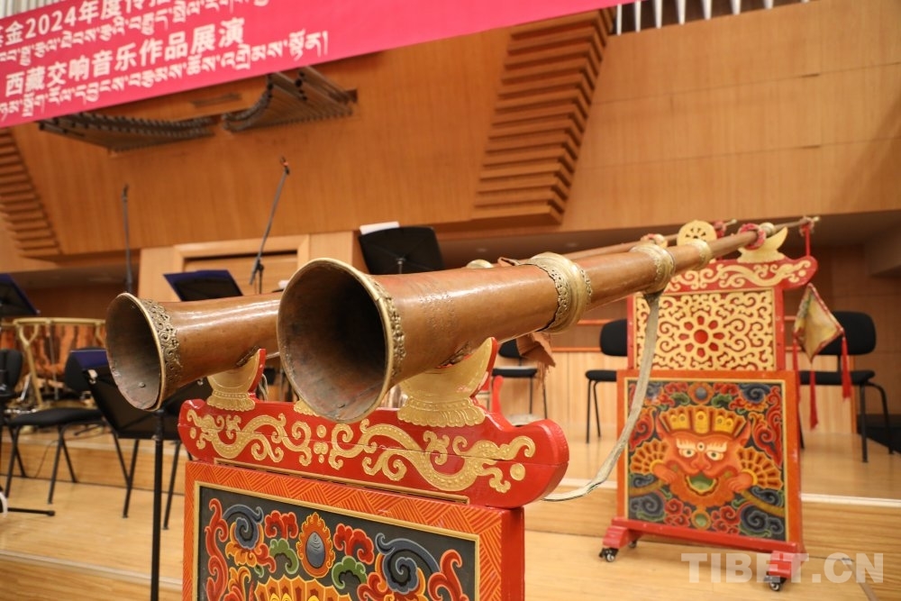 演出展示了合奏、協(xié)奏、獨(dú)奏等多種演奏形式,還加入了西藏傳統(tǒng)樂器演奏,如扎木念、藏大號(hào)等藏族傳統(tǒng)樂器,依托原創(chuàng)音樂、紅色音樂,既保留了西藏音樂的風(fēng)格,又融入了現(xiàn)代音樂的元素,展現(xiàn)了西藏音樂的多元性和創(chuàng)新性以及交響樂的豐富表現(xiàn)力。