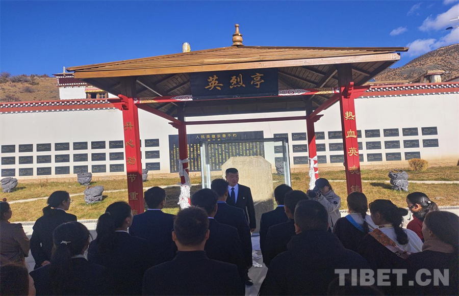 在洛隆縣康沙鎮(zhèn),在一片莊嚴肅穆的氛圍中,干部代表、學生代表、僧人代表、群眾代表等30余人集中在“重于泰山”的烈士紀念碑前,深刻緬懷先烈們的豐功偉績。這塊紀念碑記載著當年在平叛作戰(zhàn)行動中犧牲的53名革命先烈的感人事跡,60多年來義章寺僧人們精心守護著紀念碑,以實際行動發(fā)揚著愛黨愛國的情懷。