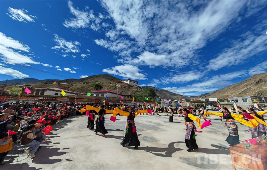 圖為洛隆縣碩督鎮(zhèn)民族團結(jié)廣場開展紀念洛隆解放74周年文藝表演活動