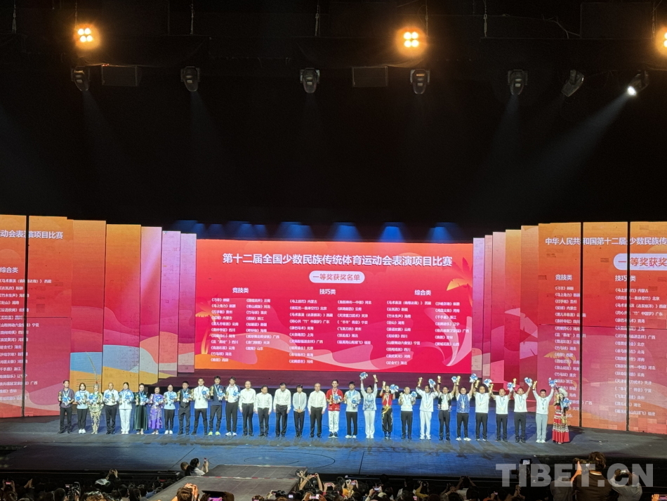 圖為第十二屆全國少數(shù)民族傳統(tǒng)體育運(yùn)動(dòng)會(huì)表演項(xiàng)目頒獎(jiǎng)晚會(huì)現(xiàn)場 西藏自治區(qū)體育局供圖