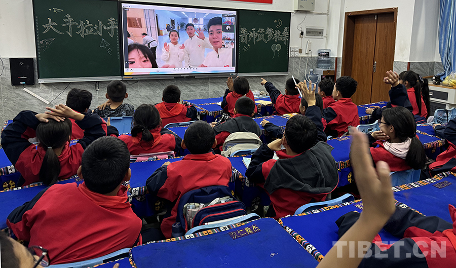 “我的家在西藏墨脫,你家在哪呢?你有沒有吃過藏面、石鍋雞,我們這里還有甜茶,你有機會一定要找我玩,我?guī)愠晕覀冞@里的美食哦!”“這位姐姐也喜歡閱讀,以后我就有可以一起分享書籍的好伙伴了?!苯?,在西藏林芝墨脫縣完全小學(xué)的校園里,發(fā)生了一件令人興奮的事情——孩子們終于跟山西師范大學(xué)的哥哥姐姐們連線啦!伴隨著孩子們的歡聲笑語,山西師范大學(xué)發(fā)起的“大手拉小手,晉師筑夢格?!毕盗谢顒右簿痛烁嬉欢温洹?/p>