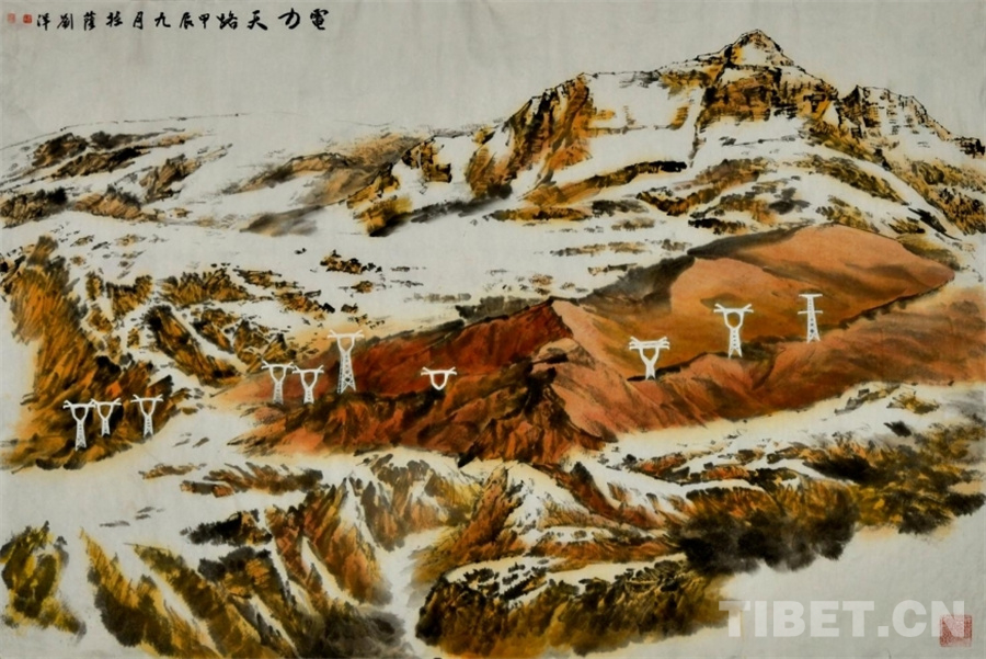 記者:路在腳下,筆隨路走。您的作品中不乏公路、鐵路、橋梁、機(jī)場等西藏現(xiàn)代化交通元素,創(chuàng)作足跡也遍布西藏七市地。如何理解以道路為代表的西藏交通變遷帶給西藏人民的變化?
