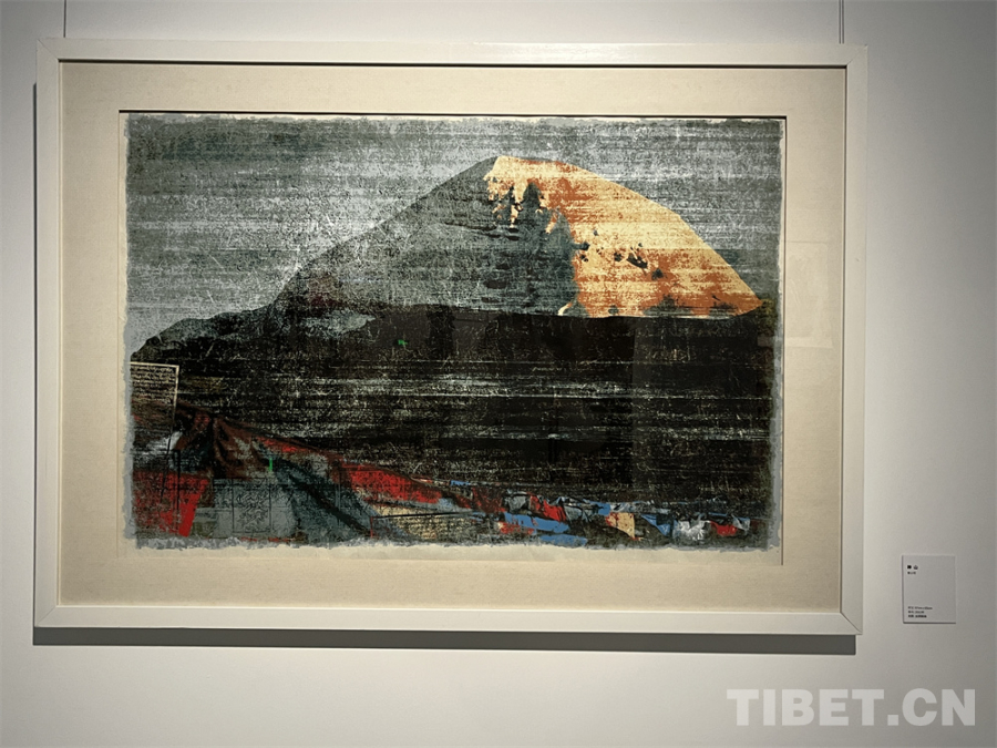 李小可曾說過:“我迷戀版畫手工制作的過程,這個(gè)過程實(shí)際上是你擁有一次再參與和再表達(dá)的機(jī)會(huì)?!贝舜握褂[活動(dòng)總策劃、李小可夫人劉瑩回憶著丈夫說過的話,并向參觀師生介紹,這些作品“采用絲網(wǎng)的方式,每張版畫都需要刮十幾版甚至幾十版,一次次、一遍遍地疊加、累積而成。創(chuàng)作的過程是李小可對(duì)西藏的情感宣泄的行為,是他將這塊土地、人民給予他感動(dòng)跡化的行為?!?/p>
