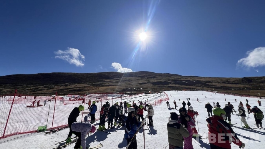 滑雪現(xiàn)場,滑雪初學者和滑雪愛好者們佩戴頭盔,身穿滑雪服,手拄滑雪杖,腳蹬滑雪板在教練的指導下學習滑雪,盡情體驗雪域高原的冰雪風情?;┏鯇W者卓瑪在教練的耐心指導下不一會兒就到滑雪區(qū)域進行實踐,下來后她說:“今天在這么好的天氣下能夠體驗滑雪項目十分開心,剛才在上面我還猶豫要不要放棄,但看到那么多人大膽地滑下去,還有不少人摔了一次又一次,依舊站起來繼續(xù)滑雪,這就給了我挑戰(zhàn)的勇氣,雖然摔了幾次,但是真的好開心呀!以后想帶著朋友和家里的小孩過來體驗。”