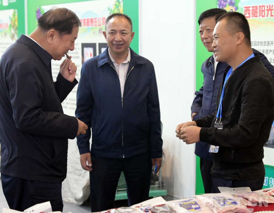 圖為在北京舉行的第二屆中國(guó)鄉(xiāng)村特色優(yōu)勢(shì)產(chǎn)業(yè)發(fā)展大會(huì)上,參會(huì)嘉賓在西藏展柜前品嘗牦牛肉干(唐召明2024年10月11日攝)