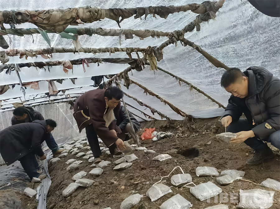 圖為昌都市農(nóng)業(yè)科學研究所工作人員為羊肚菌擺放外源營養(yǎng)袋,為菌絲生長補充營養(yǎng)