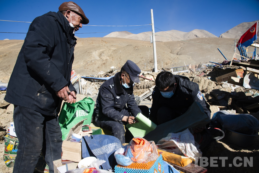 在坍塌房屋面前,救援隊伍排成一列,小心翼翼地傳遞著從受災(zāi)群眾家里轉(zhuǎn)移出來的財產(chǎn)。一包牛肉干、一袋青稞面、一只老木箱,無論物資體積大小,救援人員都把它們當作自己家的東西一樣珍惜,在受災(zāi)群眾確認后由公安干警在現(xiàn)場登記并返還給受災(zāi)群眾。