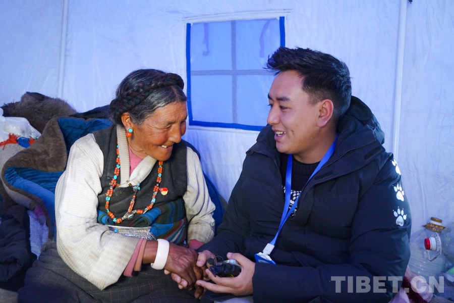 “我們村只有11戶79人,是郭加鄉(xiāng)相對(duì)較小的一個(gè)村子,村子里大多數(shù)都是老人和孩子。地震發(fā)生后,大家都非??只?,我們村干部和黨員們第一時(shí)間集結(jié)在一起,挨家挨戶進(jìn)行排查,把大家集中在村中的空地里,想盡一切辦法安撫他們的情緒?!卑锥汛宕逯魅渭骜v村工作隊(duì)副隊(duì)長(zhǎng)拉巴告訴記者,地震發(fā)生的當(dāng)天晚上,村子里就已經(jīng)搭建好了帳篷,幫助受災(zāi)群眾解決了生活物資、安置供暖等問題。