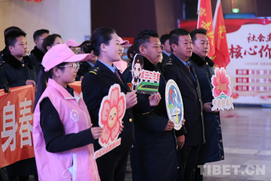 圖為拉薩車站春運首日服務(wù)宣誓活動現(xiàn)場