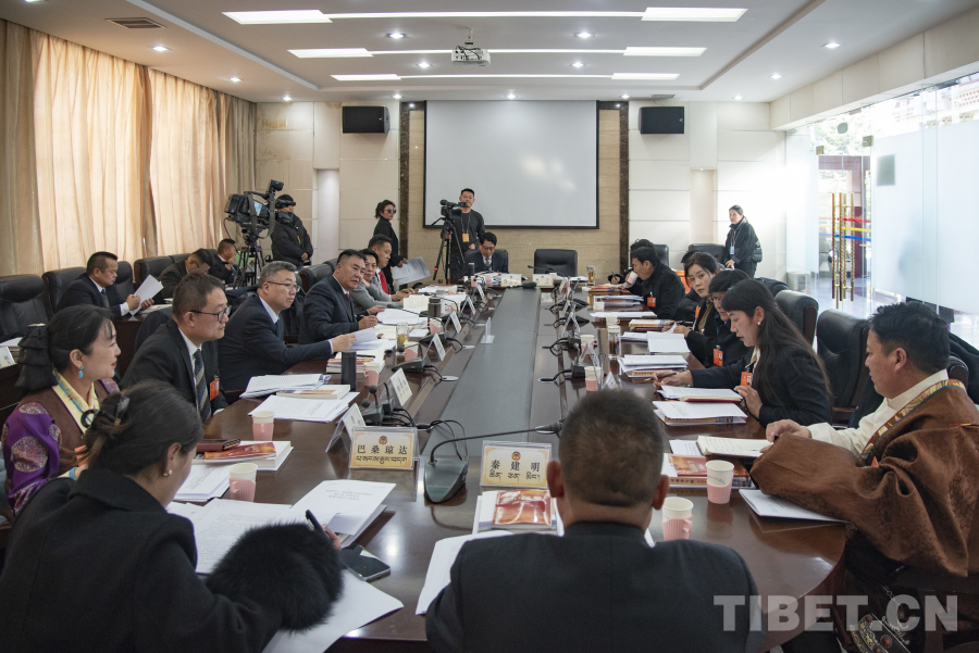 圖為政協(xié)第十二屆西藏自治區(qū)委員會第三次會議工商聯(lián)合會界別委員小組討論會現(xiàn)場(攝于1月19日) 攝影:趙振宇