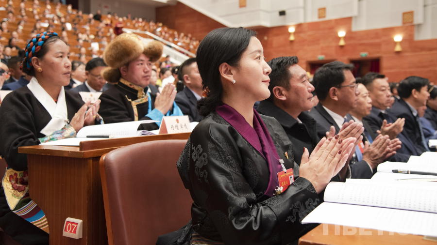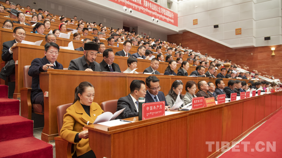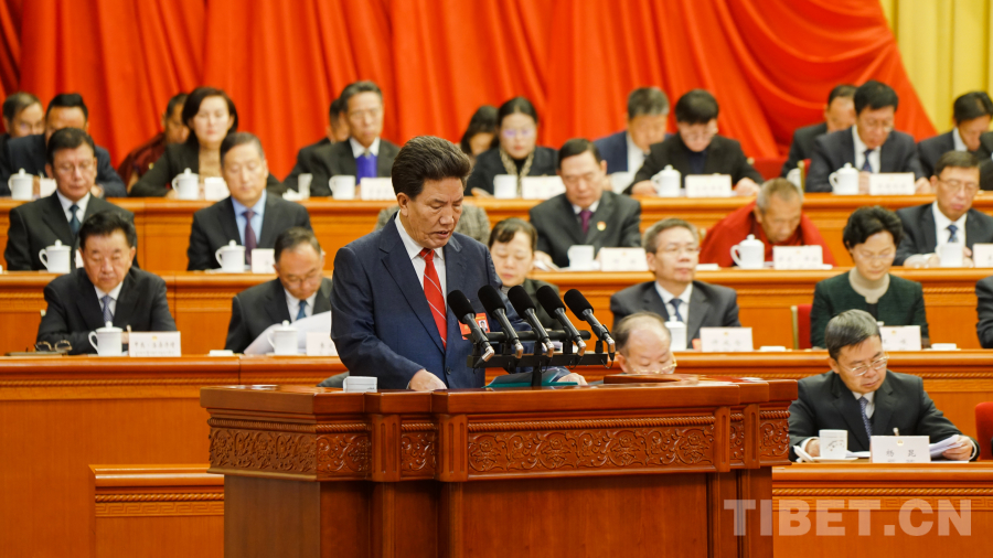 圖為洛桑江村受西藏自治區(qū)人大常委會(huì)委托作西藏自治區(qū)人民代表大會(huì)常務(wù)委員會(huì)工作報(bào)告 攝影:趙振宇