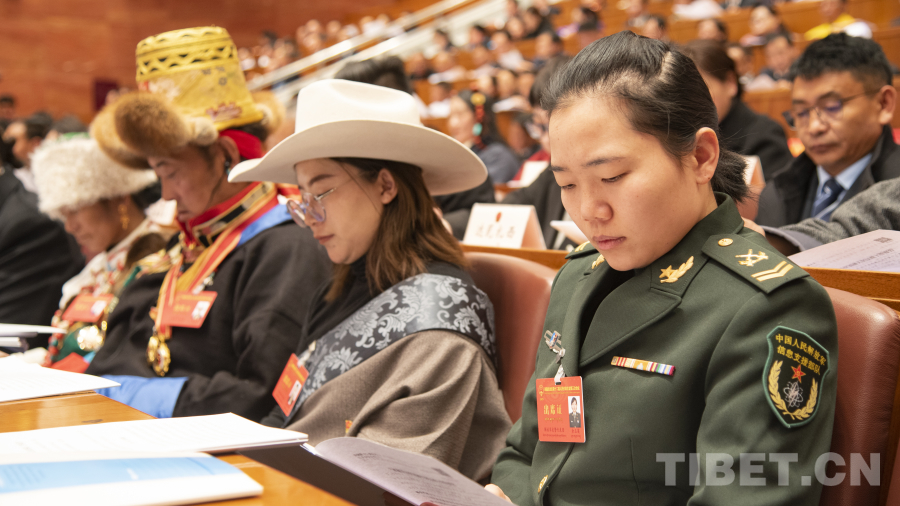 圖為西藏自治區(qū)人大代表聆聽人大常委會(huì)工作報(bào)告 攝影:趙振宇