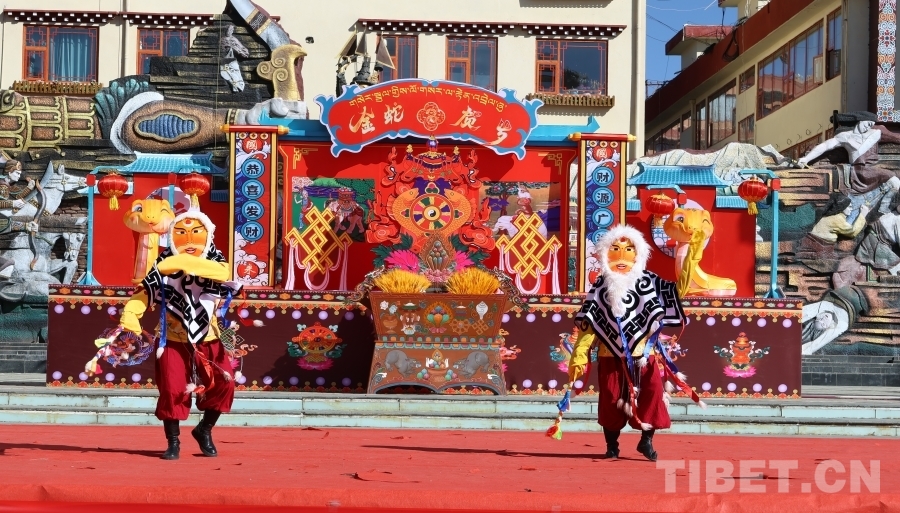 悠揚高亢的藏戲唱腔劃破云霄,四川省級非遺項目“理塘藏戲”率先登場,一曲《扎西雪巴》將藏戲舞蹈生動呈現(xiàn)于觀眾面前。圍觀的男女老少紛紛鼓掌,不時拿出手機定格精彩畫面。