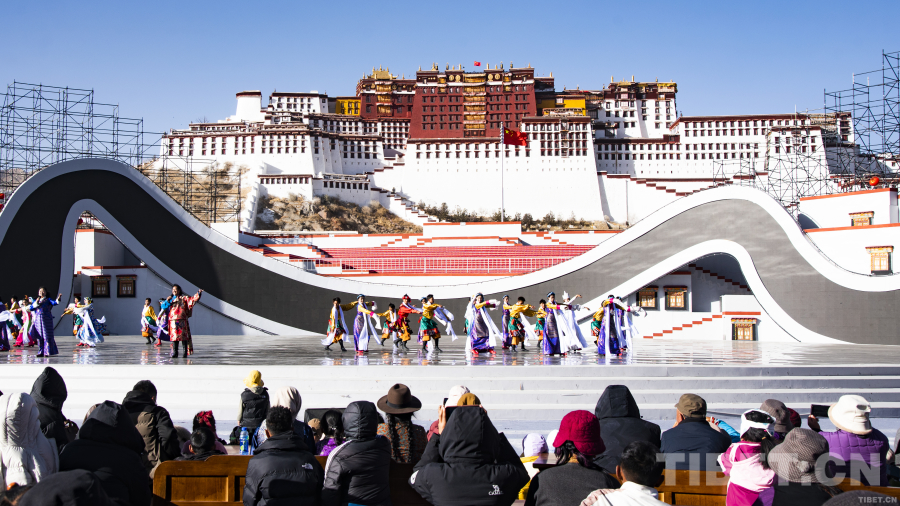 2月1日,農(nóng)歷正月初四,布達拉宮廣場上的藏式沙發(fā)座無虛席,由西藏自治區(qū)文化和旅游廳、拉薩市委宣傳部、拉薩市文化和旅游局組織的惠民演出正在總臺春晚西藏拉薩分會場的舞臺上上演。居住在八廓街附近的小拉姆告訴記者,演出每天下午4點開始,但她跟著爺爺奶奶每天下午3點便早早出門來到這里占座。環(huán)顧觀眾席四周,游人早已將觀眾席包圍起來,紛紛拿出手機打卡拍照,記錄下的不僅僅是極具民族風(fēng)情的演出節(jié)目,更是別具特殊意義的農(nóng)歷春節(jié)。