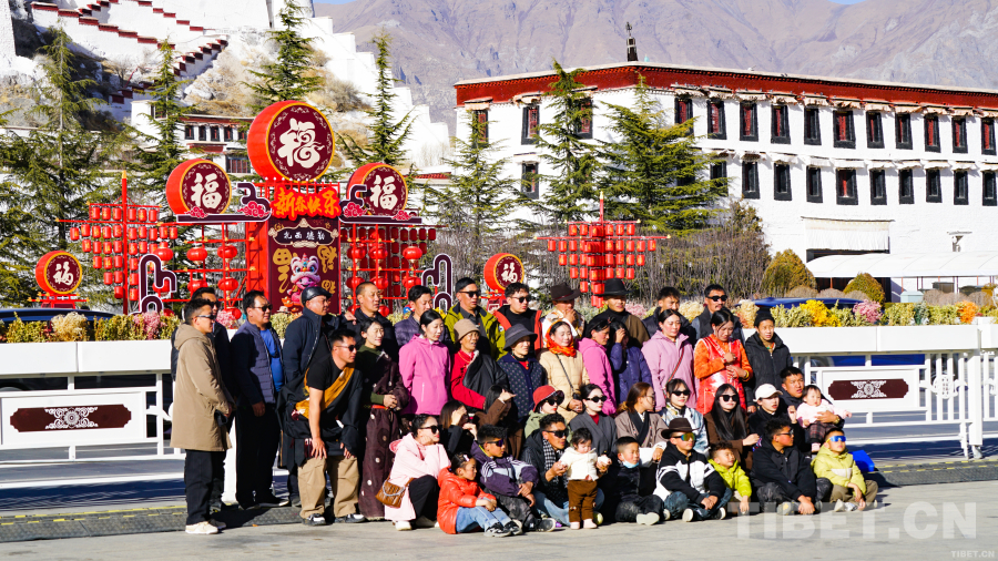 圖為市民在布達拉宮廣場拍攝新春全家福 攝影:趙振宇