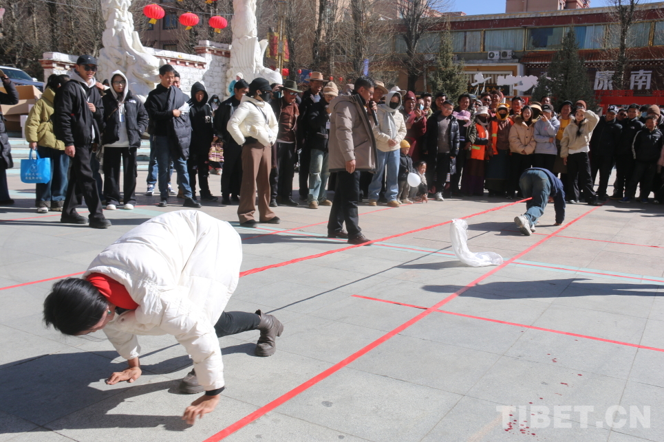 “加油,加油!”歡呼聲不絕于耳,在廣場中央的趣味民俗體育區(qū)域,縣教育體育局舉辦了民族傳統(tǒng)體育項目“格吞”(藏式拔河)和“翻山越嶺”障礙賽、“袋鼠跳”接力賽、踢毽子等豐富多樣的比賽項目,三百多名圍觀群眾踴躍報名,分組參與,盡情體驗體育活動帶來的歡樂和激情。