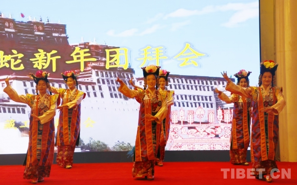 隨著拉薩城關(guān)區(qū)娘熱民間藝術(shù)團的歌舞表演開始,《祝福》樂聲悠揚,團拜會正式拉開帷幕?!袄习嚅L”葉鵬穿上自己的綠軍裝重新演繹民族團結(jié)與軍民深情的經(jīng)典歌舞《洗衣歌》;青少年學(xué)生們和著優(yōu)美的旋律,以歡快的舞步跳起《崗巴拉姆》,點燃了現(xiàn)場氣氛;一級演員劉媛媛演唱的《五星紅旗》《國家》飽含深情,北京首都軍之魂合唱藝術(shù)團的大合唱《共筑中國夢》《走向復(fù)興》慷慨激昂,表達了大家對祖國的熱愛……還有悠揚的扎木念表演、男聲獨唱等節(jié)目豐富精彩。大家在歡聲笑語中共同感受著節(jié)日的喜悅,共同祝愿西藏在新的一年里再創(chuàng)輝煌,共祝西藏各族人民幸福安康,羅薩扎西德勒。(中國西藏網(wǎng) 記者/王茜 實習(xí)生/扎西央措)