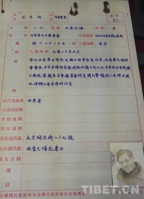 1931年,劉家駒加入中國(guó)國(guó)民黨,成為早期藏族黨員之一。他不僅出席了中國(guó)國(guó)民黨四中全會(huì),還參加了國(guó)民政府在洛陽(yáng)召開(kāi)的國(guó)難會(huì)議,并將自己的著作《康藏的過(guò)去和現(xiàn)在》分發(fā)給與會(huì)人士,大聲呼吁大家重視康藏工作。同年11月21日,“西康旅京同鄉(xiāng)國(guó)防救亡會(huì)”成立,劉家駒被選舉為會(huì)長(zhǎng),在9名執(zhí)行理事中,有6名是藏族,分別為劉家駒(格桑群覺(jué))、江安西(洛松鄧珠)、馬定西、佛平西、楊紹西、馮云仙(女)?!秶?guó)聞周報(bào)?名人錄》第8卷20期專(zhuān)門(mén)對(duì)時(shí)年29歲的劉家駒進(jìn)行了介紹。此時(shí)的他,已經(jīng)是中央政治學(xué)校(蒙藏政治訓(xùn)練班)的藏文教授,在教育領(lǐng)域發(fā)揮著重要作用,為培養(yǎng)了解藏族文化和語(yǔ)言的人才貢獻(xiàn)力量,為邊疆治理提供智力支持。