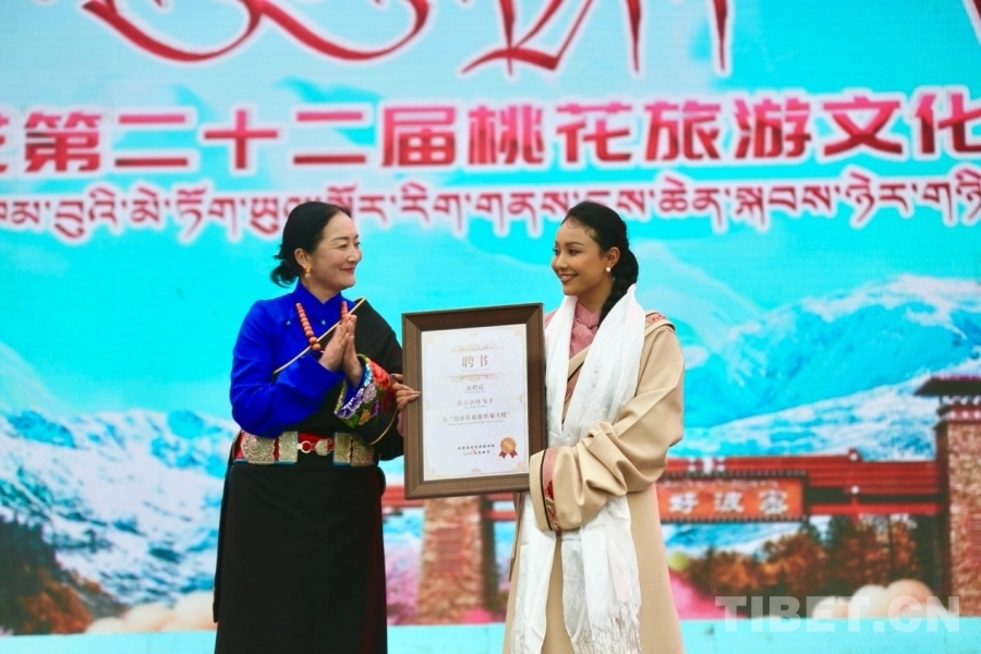 圖為網(wǎng)絡達人德吉卓瑪被授予波密縣旅游形象大使證書