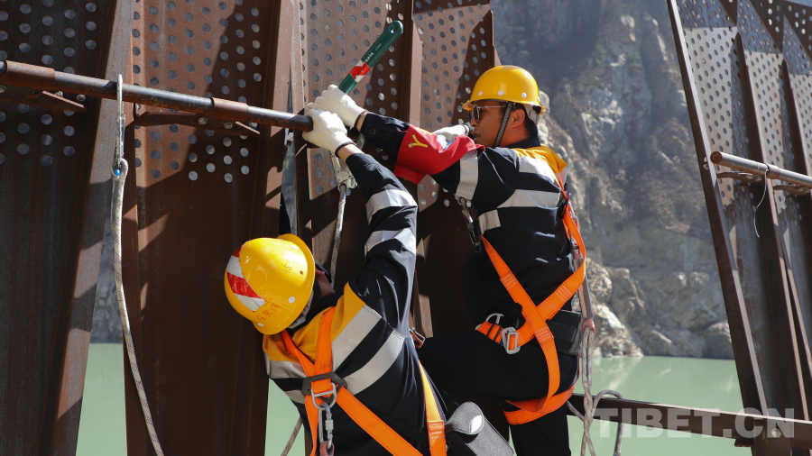 高空峽谷風(fēng)急聲勁,每一位加查路橋維修工區(qū)上拱的職工都要經(jīng)歷身體因恐高眩暈和不適,再到逐步適應(yīng)和習(xí)慣,最終喜歡爬到橋的最高處眺望雅魯藏布江蜿蜒而過的過程。