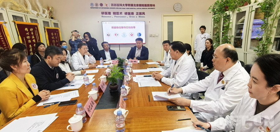圖為北京朝陽醫(yī)院骨科團隊向“同心·共鑄中國心”組委會執(zhí)行主席金大鵬,北京朝陽醫(yī)院黨委書記、理事長紀(jì)智禮,北京朝陽醫(yī)院院長李海潮等介紹患兒病情、手術(shù)及恢復(fù)情況 攝影:劉莉
