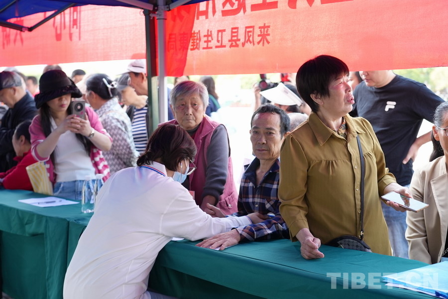 中國西藏網(wǎng)訊 4月18日,“同心·共鑄中國心”大型公益醫(yī)療服務(wù)活動走進湖北省恩施土家族苗族自治州來鳳縣。來自北京的10名醫(yī)療專家組成的聯(lián)合義診團隊,在喳西泰廣場為當(dāng)?shù)厝罕娞峁┙】底稍?、疾病篩查及個性化診療服務(wù)?;顒蝇F(xiàn)場,專家們耐心解答群眾健康問題,針對常見病、慢性病進行細致篩查,并提出專業(yè)診療建議。(中國西藏網(wǎng) 記者/蘇洋)