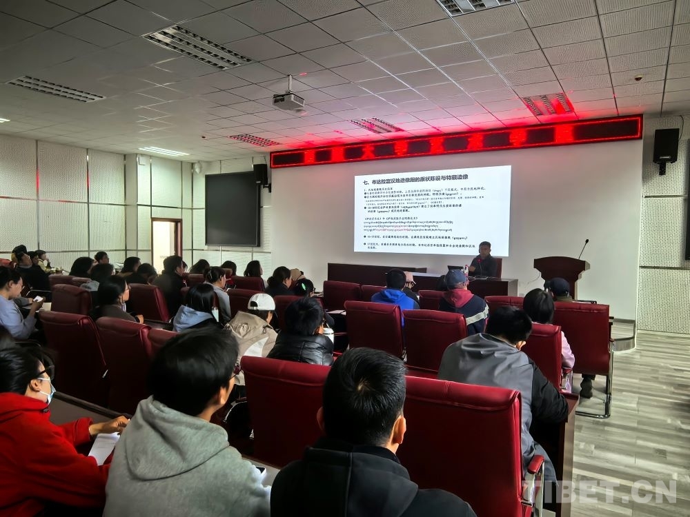 圖為布達拉宮文物管理處文物研究室班旦次仁老師在西藏大學藝術(shù)學院講座現(xiàn)場 攝影:王淑