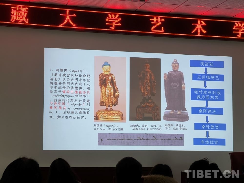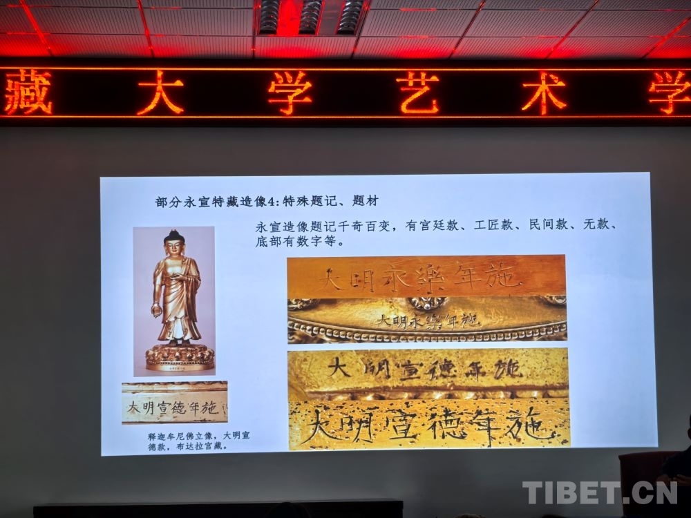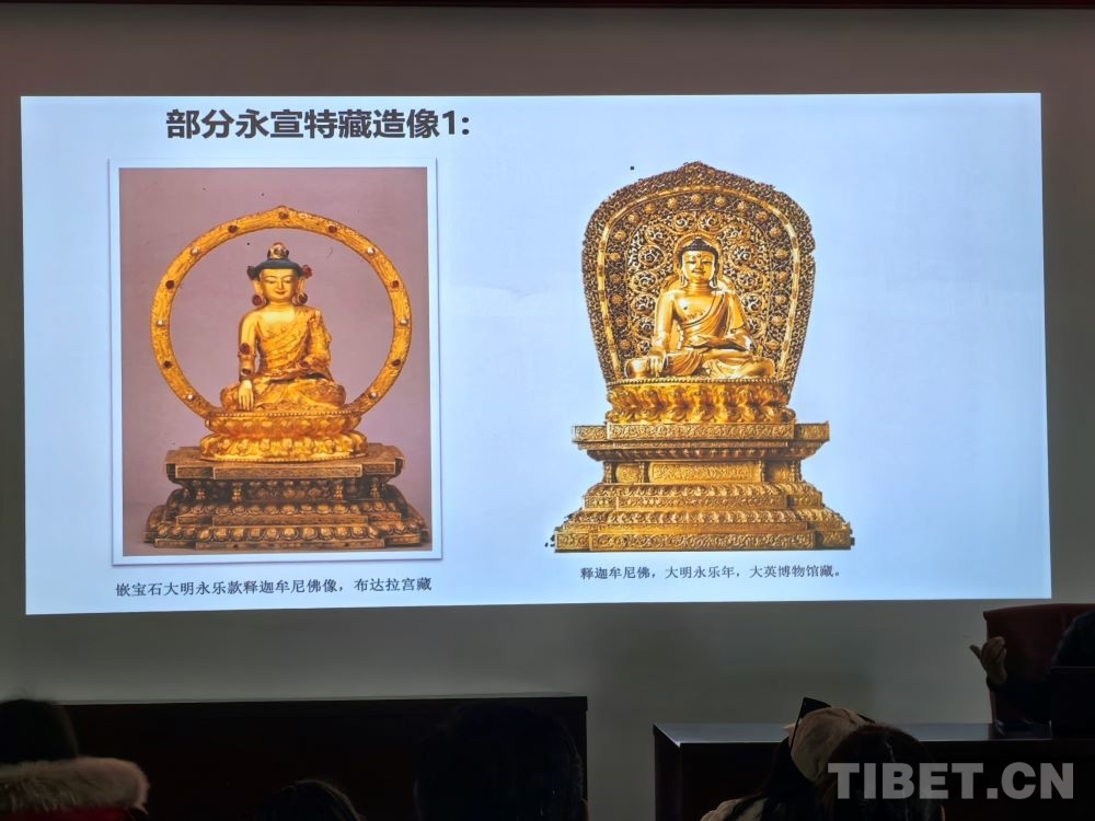 5月8日,在西藏大學藝術(shù)學院內(nèi),一場題為《布達拉宮館藏大明永宣款造像相關(guān)問題考察——兼談“漢地造像殿”的復原陳設(shè)研究》的講座吸引了眾多學術(shù)愛好者。布達拉宮文物管理處文物研究室班旦次仁老師以大量西藏大明永宣款造像為案例,向在場聽眾介紹了這一時期的佛像如何以媒介的形式增強各民族間的感情。