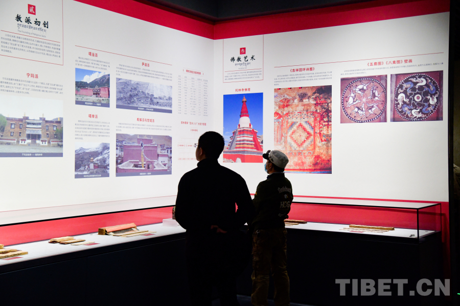 圖為西藏博物館內(nèi)游客認(rèn)真觀看佛教藝術(shù)相關(guān)展陳 攝影:趙振宇