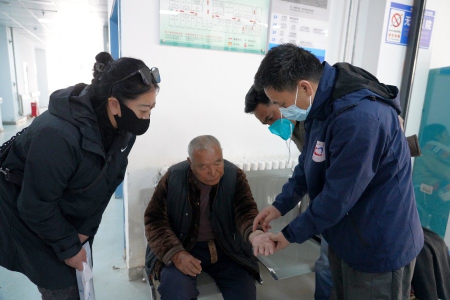 一日,羅讓甲央得知當?shù)卣l(fā)布了一則通知:首都醫(yī)療專家團隊將赴阿壩縣開展義診活動。得知這一消息,老人激動不已,他這次下定決心,一定要請專家們?yōu)樗槊鞑∫?,相信他們能妙手回春,解除他的病痛。自那以后,他便日日期盼著專家們的到來,每日守在電視機前,焦急地詢問著:“醫(yī)生們何時能到?是否已臨近?”終于,他盼來了這一天。更巧的是,他的外孫女是當?shù)匾幻t(yī)務(wù)工作者,在此次義診中,她擔任了專家團隊的翻譯工作。