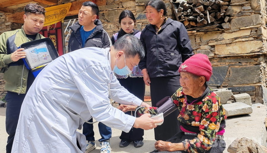 圖為 “同心·共鑄中國(guó)心”2025阿壩行大型健康公益綜合服務(wù)活動(dòng)義診醫(yī)療專(zhuān)家在四川省阿壩州馬爾康市日部鄉(xiāng)入戶(hù)巡診,為行動(dòng)不便的老人送醫(yī)送藥 攝影:張宏武