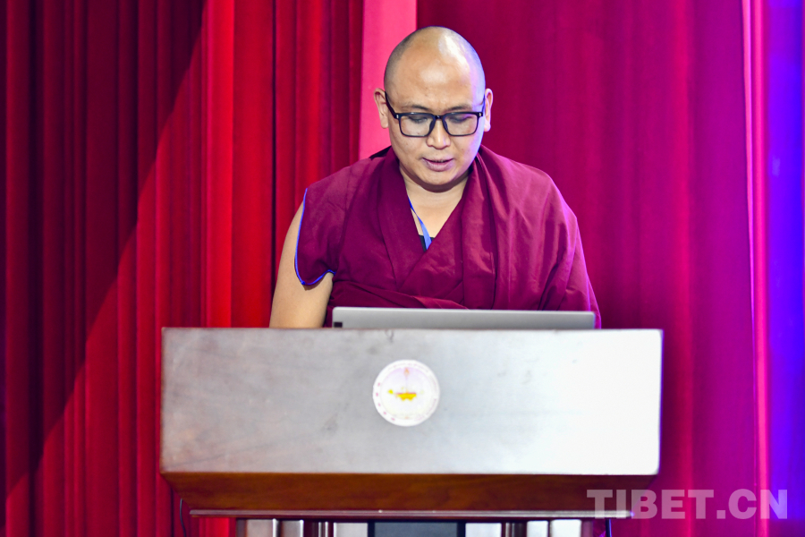 來自西藏佛學(xué)院的經(jīng)師阿旺桑珠作了題為《著<辨了不了義論>的歷史背景及其影響》的報告,以探討《辨了不了義論》的創(chuàng)作環(huán)境與歷史背景為起點,論述該經(jīng)典從主題到用語,都以推動藏傳佛教健康發(fā)展為出發(fā)點,承擔(dān)起從了義、不了義角度闡釋佛教教義的重任,填補(bǔ)了藏傳佛教此前沒有相關(guān)著作的空白。