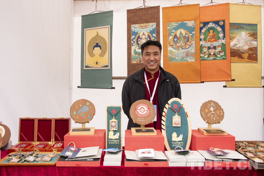 在集市的另一頭,是昌都市瑪吉阿媽唐卡畫院所展出的唐卡漆畫?!捌岙嬀哂欣L畫和工藝的雙重屬性。我們畫院主要是傳承嘎瑪嘎赤畫派的藝術(shù)作品,但近年來我們將傳統(tǒng)畫派藝術(shù)和福建漆畫進(jìn)行了有機(jī)結(jié)合,以漆畫的工藝結(jié)合唐卡的審美,創(chuàng)作出一系列作品。這些唐卡漆畫不僅在西藏很受歡迎,也有其他省份的人士向我們定制?!倍嗉嬖V記者,每一件唐卡漆畫都融合了西藏傳統(tǒng)故事、傳說等文化內(nèi)涵,不僅是一件藝術(shù)品,更是向外界展示西藏優(yōu)秀傳統(tǒng)文化的窗口。