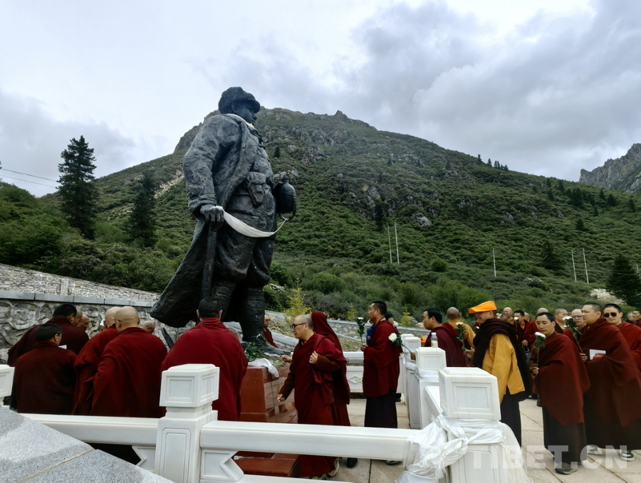 圖為甘孜州宗教界國(guó)家意識(shí)公民意識(shí)法治意識(shí)教育第一期培訓(xùn)班學(xué)員們瞻仰張福林烈士生平 攝影:劉莉