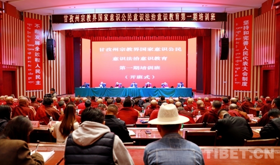 中國西藏網(wǎng)訊 6月24日,甘孜州宗教界國家意識公民意識法治意識教育第一期培訓(xùn)班開班儀式在四川省甘孜藏族自治州甘孜縣會師劇場舉行,澤旺吉美、多吉扎西、圖布丹·確吉堅贊等140余名藏傳佛教界和天主教、基督教、伊斯蘭教等宗教代表人士參加開班儀式和培訓(xùn)。