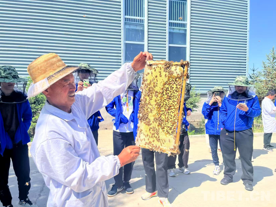 小小中華蜜蜂的“勞動成果”也不容小覷。在第44屆國際養(yǎng)蜂大會上,青藏華峰帶著高原蜂蜜斬獲國際金獎,完勝當時來自50多個國家和地區(qū)的上千個蜂蜜產品。如今,在政府的重視下,搭建平臺讓蜂蜜得到更好的展示,讓青藏華峰的品牌之路走得更穩(wěn)。當工作人員現(xiàn)場打開蜂箱,展示如何采集蜂蜜時,青少年們紛紛上前嘗試,親身體驗養(yǎng)蜂的樂趣。當金黃的蜂蜜緩緩流出,空氣中彌漫著香甜氣息,學生們臉上洋溢著興奮與驚喜,第一次吃到從蜂巢里取出的新鮮蜂蜜,感受大自然饋贈的美好。
