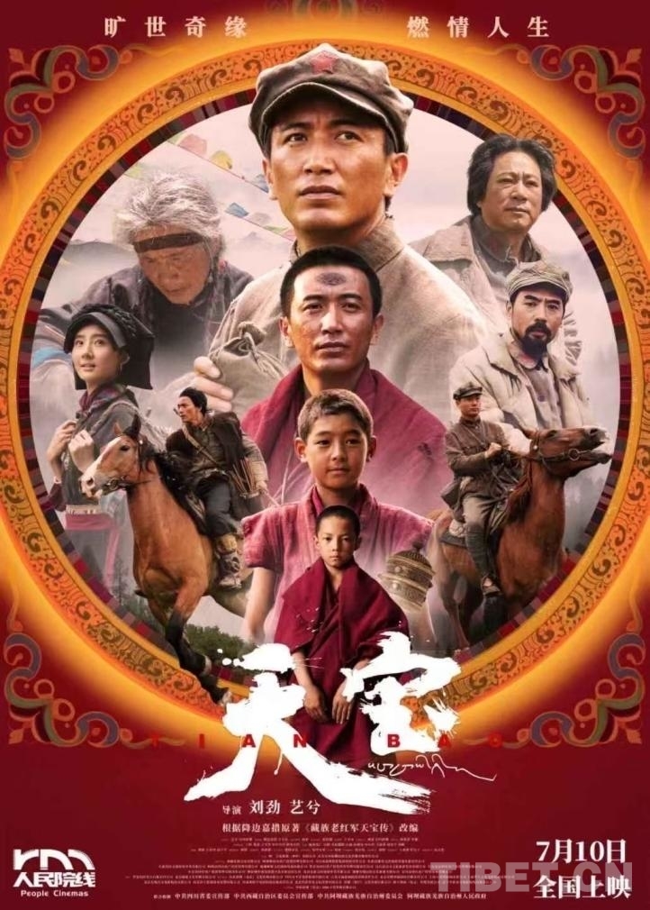 電影《天寶》改編自作家降邊嘉措的傳記文學(xué)作品《藏族老紅軍天寶傳》,影片以天寶(原名桑吉悅希)從少年到中年時(shí)代的真實(shí)經(jīng)歷作為創(chuàng)作素材,全景式講述了桑吉悅希從僧人,到參加紅軍、三過(guò)草地,在延安中央黨校民族班學(xué)習(xí)期間被毛澤東主席改名為“天寶”,后又參加和平解放西藏等,歷經(jīng)千錘百煉和血與火的洗禮,最終成為中國(guó)共產(chǎn)黨的優(yōu)秀黨員、忠誠(chéng)的共產(chǎn)主義戰(zhàn)士的革命英雄事跡。