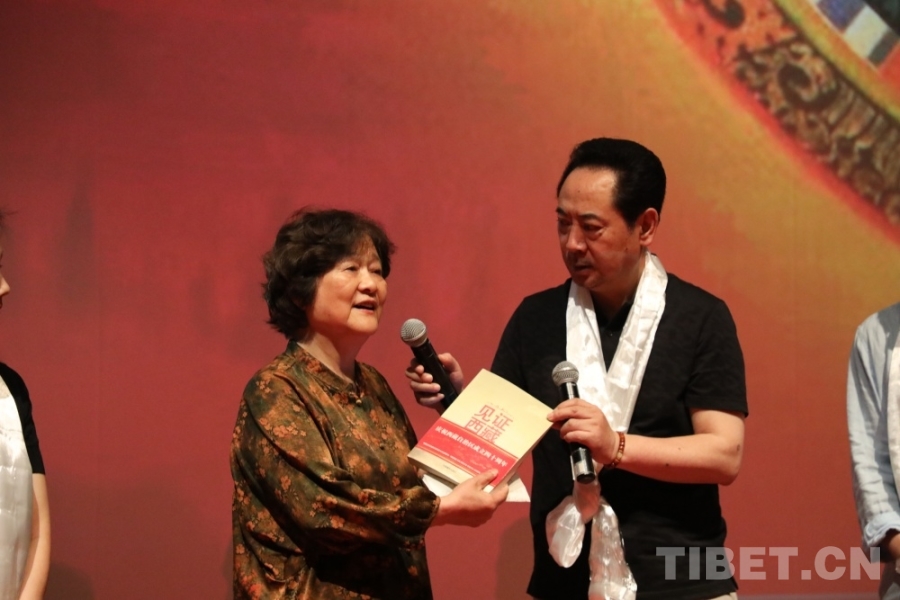 中國(guó)藏學(xué)出版社原總編輯、作家馬麗華表示,自己還沉浸在電影的情節(jié)里,“我覺(jué)得這部電影太好了,讓人非常感動(dòng)。革命建設(shè)事業(yè)要薪火相傳,希望大家都能來(lái)重溫這段歷史。”她特意帶來(lái)西藏自治區(qū)成立四十周年時(shí),由西藏自治區(qū)政府歷任主席共同撰寫(xiě)的《見(jiàn)證西藏》一書(shū),其中就有天寶所寫(xiě)的《西藏十二載 一生不了情》。他在文中深情地說(shuō):“我的一切都是黨給的,就連我天寶這個(gè)名字,也是毛主席給我起的”。