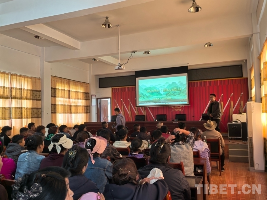 圖為群眾觀看藏語(yǔ)配音的環(huán)保宣傳片《大自然在說(shuō)話(huà)》