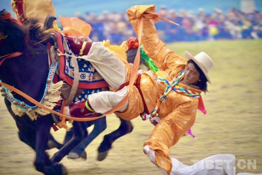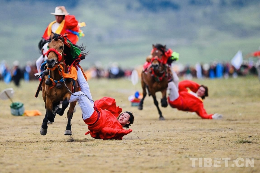 十分鐘限時(shí)表演,檢驗(yàn)的是理塘千年馬背功夫的傳承,大家要拿出最好的狀態(tài)‘出戰(zhàn)’。起點(diǎn)指揮官一聲令下,第一組奔戈鄉(xiāng)騎手率先策馬由南向北疾馳,拾哈達(dá)、馬上打靶、呷糾競(jìng)技等傳統(tǒng)項(xiàng)目輪番上演。騎手們身手敏捷,技藝高超,馬蹄揚(yáng)塵間盡顯康巴漢子的騎術(shù)精髓。