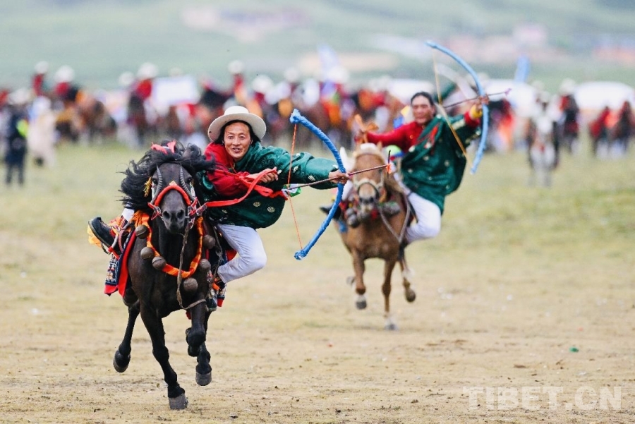 當(dāng)天下午,速度與激情仍在八一賽馬場(chǎng)不斷上演。三項(xiàng)10000米速度耐力賽迎來(lái)最終角逐。大馬組如離弦之箭,破空而出;中馬組疾行如風(fēng),勢(shì)不可擋;小馬組氣勢(shì)如虹,奮蹄爭(zhēng)先。每一次驚心動(dòng)魄的彎道超越,都讓觀眾席爆發(fā)出海嘯般的助威,廣袤的草原仿佛瞬間幻化成一片沸騰的競(jìng)技海洋。與此同時(shí),騎射邀請(qǐng)賽也在多旺塘精彩上演。馬蹄翻飛間,騎手張弓搭箭,弓弦響處,箭矢流星般釘入靶垛。“這不僅比射術(shù),更比人馬合一的默契?!币晃簧碇鴤鹘y(tǒng)服飾的本地牧民向身旁的游客解釋,眼中流露出無(wú)法掩飾的自豪。