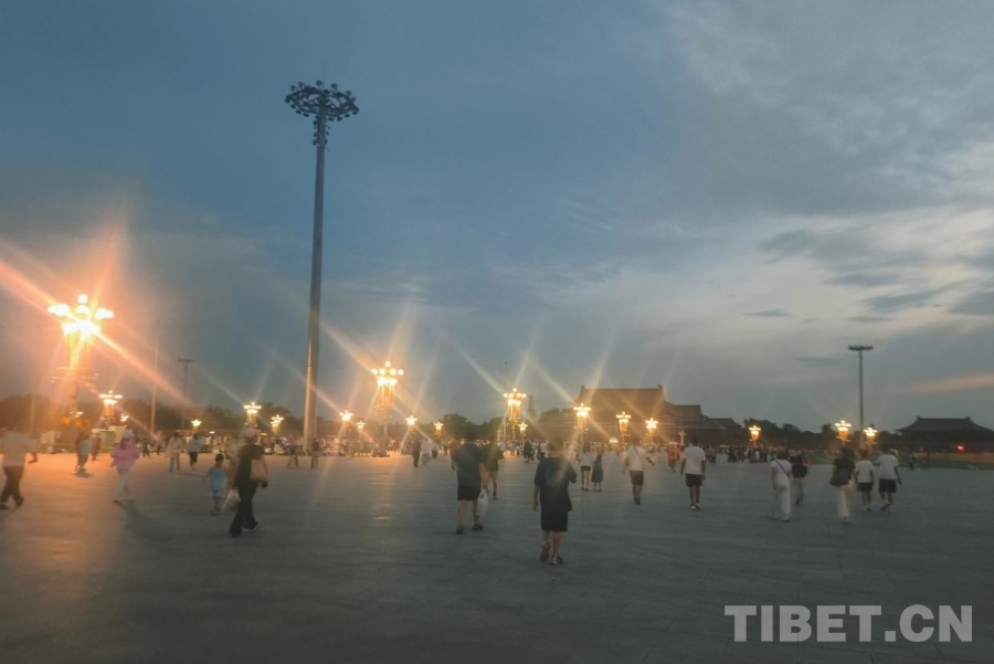 暑期的天安門廣場更加熱鬧,不僅有一家老幼同游的家庭,有旅行社帶來的各地旅游團(tuán),最多的是各種學(xué)校、團(tuán)體組織的大大小小的學(xué)生團(tuán),他們身著不同顏色款式的服裝,共同等待著激動人心的時刻。“山河同脈·京華筑夢”研學(xué)團(tuán)的少年們便是其中一員,他們穿著淺藍(lán)色的T恤,戴著白色的棒球帽,散發(fā)著西藏少年的朝氣。