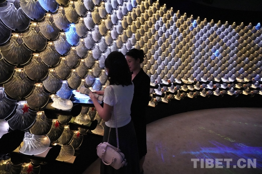 展覽的最后一個部分名為“團(tuán)結(jié)統(tǒng)一”,重點展示了中國共產(chǎn)黨領(lǐng)導(dǎo)下西藏民主改革后發(fā)生的翻天覆地變化,以及新時代以來,西藏各族群眾同全國人民一道建設(shè)新西藏的歷史性成就。
