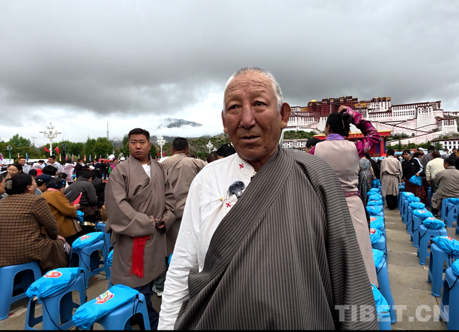 今日的布達拉宮廣場洋溢著濃厚的節(jié)日喜慶,慶祝現場化作一片歡樂的海洋。老年群眾精神矍鑠、笑容洋溢,眼中寫滿對當下生活的滿足與對未來美好生活的憧憬。