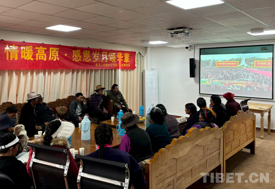 中國西藏網(wǎng)訊 在西藏自治區(qū)成立60周年的喜慶日子里,西藏自治區(qū)昌都市邊壩縣普玉二村農(nóng)村幸福苑內(nèi)歡聲笑語、其樂融融。駐村工作隊舉辦“情暖高原·感恩歲月頌華章”主題慶祝活動,全村老少歡聚一堂,共同觀看西藏自治區(qū)成立60周年慶祝大會盛況,感受輝煌時刻。